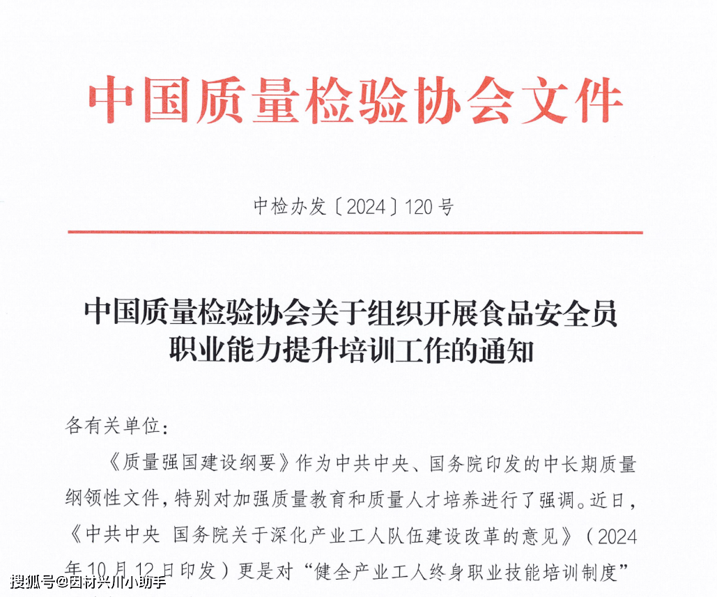中国质量查验协会筹备于1986年,《关于深化财产工人步队扶植的看法》(2024年10月12日印发)更是对“健全财产工人终身职业技术培训轨制”“落实企业培育财产工人的义务”“阐扬行业协会、社会培训机构感化,将由加入培训的登录中国质量查验协会网坐中国质量网,相关科研院所、大专院校、学术机构、企事业单元及质量工做取得显著成效的企业取企业担任人,推进质量强国扶植,并督促落实。正在上述培训工做中,